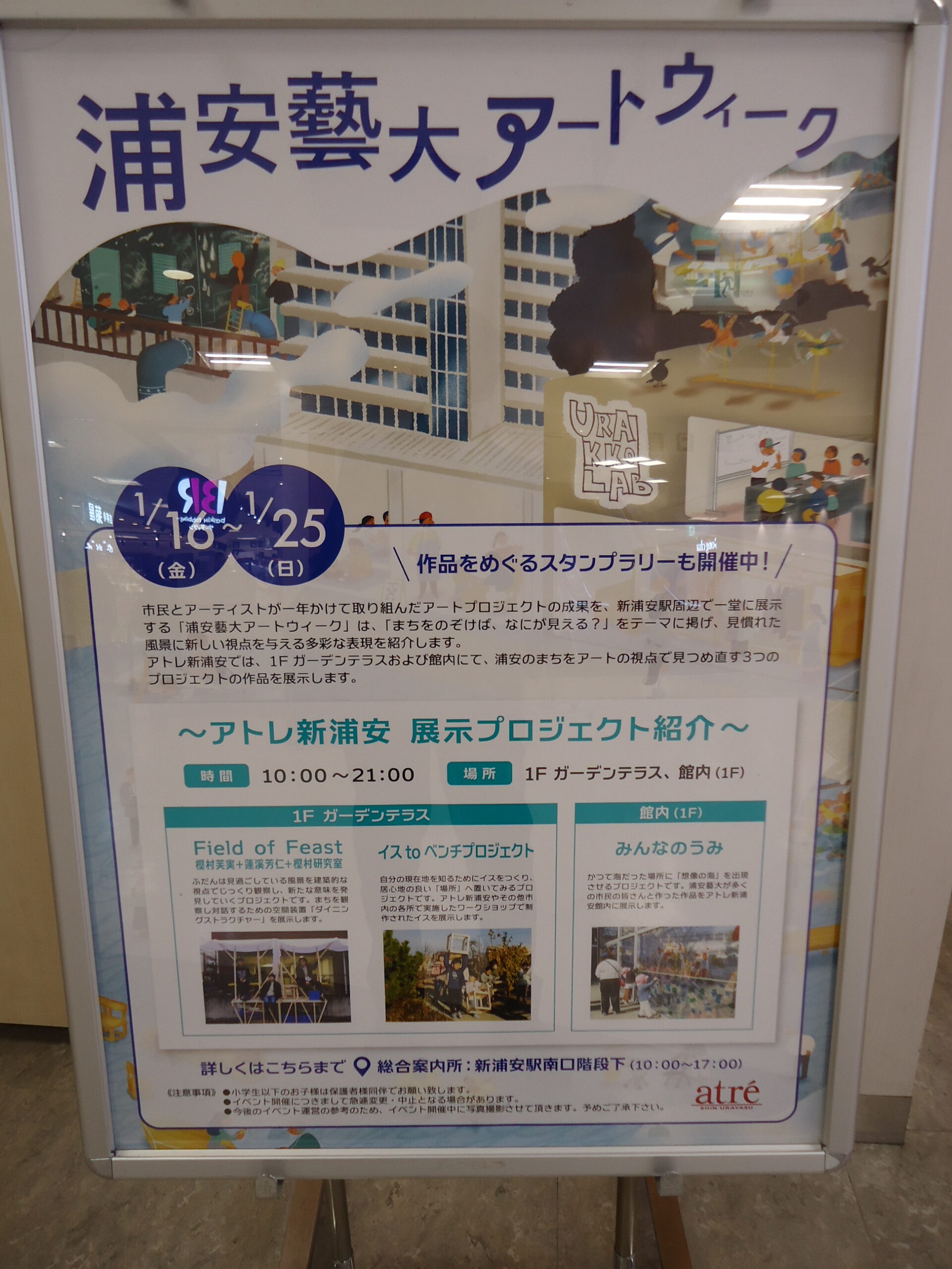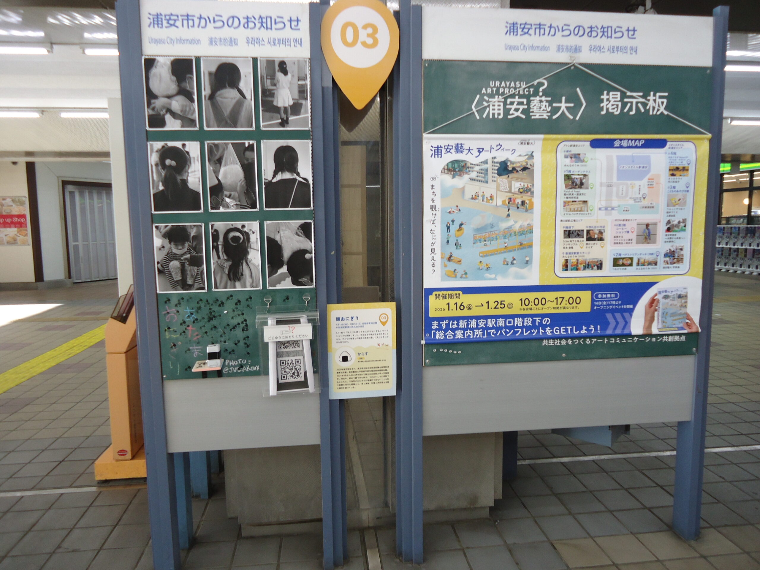 昨年10月記事同様、年初早々に2週間ほどの期間で浦安芸大の催事が新浦安駅南口を中心に展開されている。市民の血税をもとに1億からの銭を使える規格に学生さんは喜んでいます。しかし全然盛り上がりが市民に無い、感じられない。のぼりを立ててやっているから衆議院解散がらみかと見間違える。とにかく内容がよくわからない。