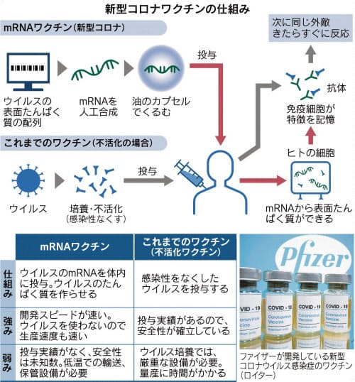 米製薬企業は開発する新型コロナウイルスのワクチンが高い有効性を示したと相次いで発表した。いずれも「メッセンジャー(m)RNAワクチン」と呼ばれる新しいタイプで、効果や安全性は未知数で、摂取した健常人に深刻な副作用という事例も出てきているし、治療薬の効果が否定される事例も相次いでいる。