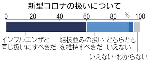 コロナの法的扱い「インフル並みに」60% 維持は31%